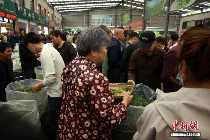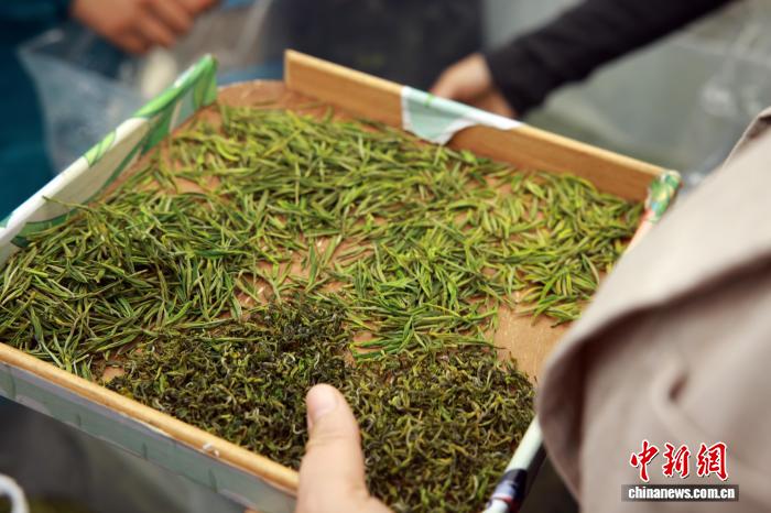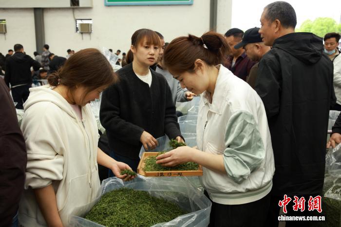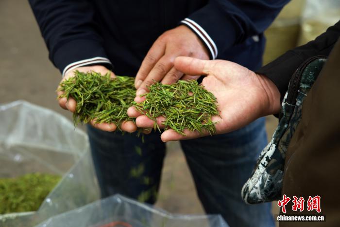 3月31日,茶商(左)正在选择新茶。中新社记者 孙杨洋 摄